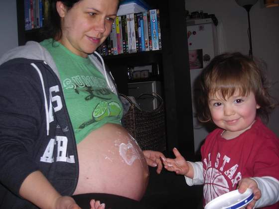 To mój dzisiejszy brzuszek...dobrze, że rozstępów nie widaćMati bardzo lubi wklepywać krem:-)