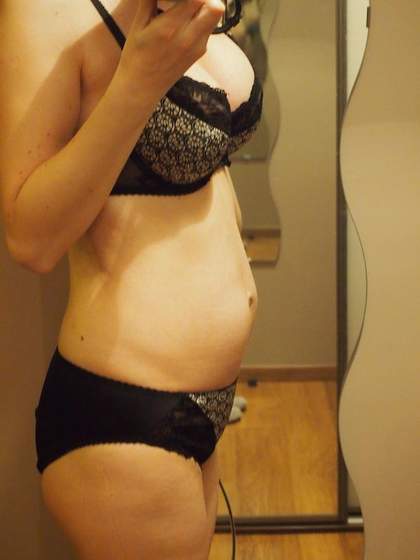 Ja też mam oponkę, ale widać gdzie brzuszek ciążowy a gdzie tkanka tłuszczowa- brzuch podzielił mi się na 2 części :P