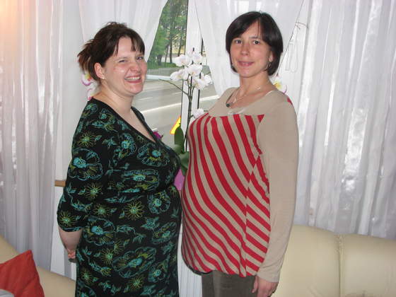 Calineczka to jeszcze nic! Moja świadkowa slubna, a kuzynka męża tez jest w ciązy w 28 tyg. tak jak moja przyjaciólka. Oto fotka z 16.05.2010, czyli z wczoraj! Ja z lewej.