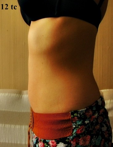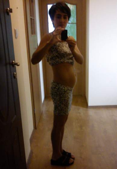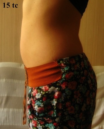 Jest i upragniony brzuszek - zaczyna się pojawiać A i troszkę tłuszczyku się zbierało, nie wiem skąd, bo nie jem dużo i niezdrowo, ale no, niech już mu będzie Ważne że brzuchol zaczyna być widać! Celowo ubrałam te same spodnie, żeby było jak najbardziej wiarygodnie Dla porównania zdjęcie z 12 tc