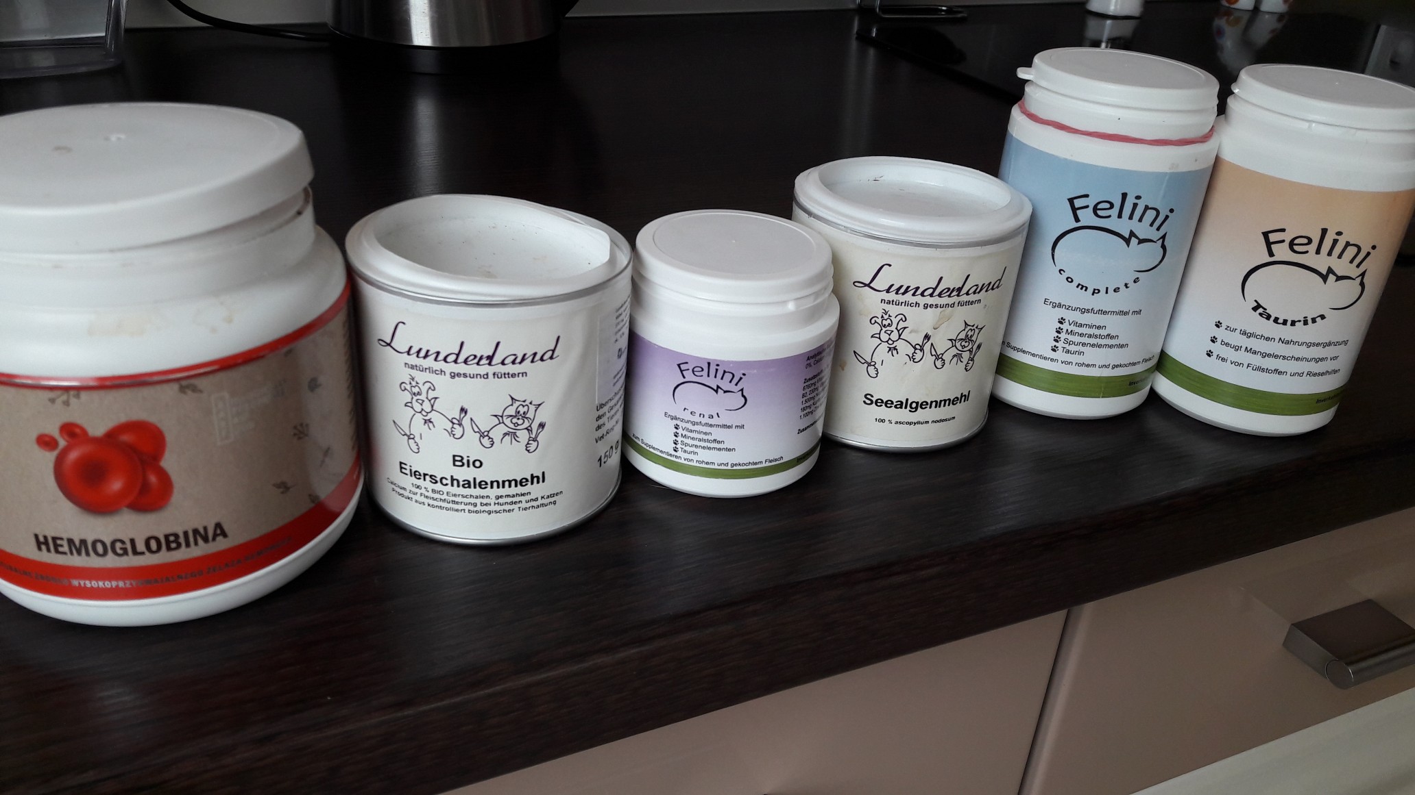 Jak kotu zasmakuje, wtedy udoskonalamy przepis przez kolejne suplementy (zwłaszcza tauryne, której w tych gotowych preparatach jest mało).