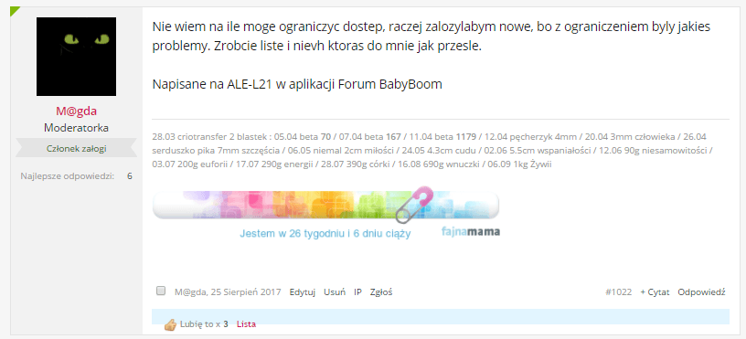 Co do forum, moze faktycznie lepiej juz zostawic ten temat, lub przeniesc rozmowy na ten zamkniety, po co dziewczyny ktore dopiero tu przyszly maja to czytac. To chyba nie jest miejsce na klotnie. Cieszmy sie ciaza