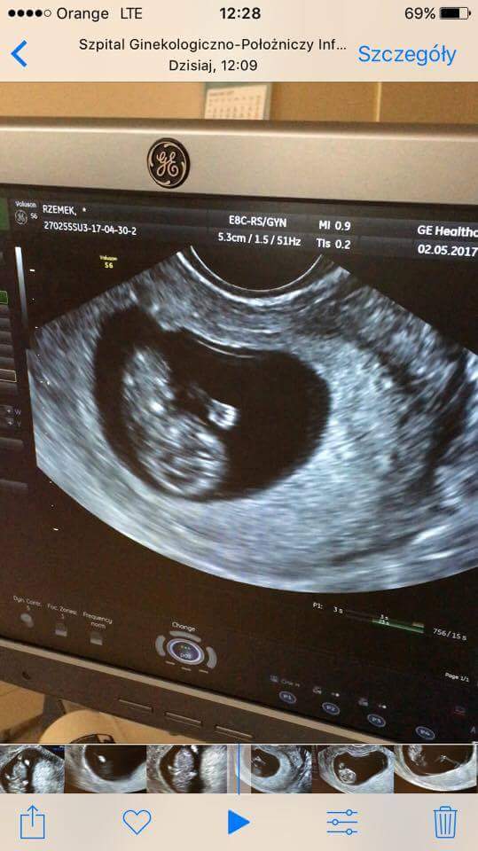 Na pierwszym zdjęciu widać rączkę, na drugim rączki, nóżki, na trzecim jest do góry nogami. Ruszał się, wręcz tańczył, serduszko tłucze jak szalone. Wszystko jest pięknie! Lekarz zachwycony, a my przeszczęśliwi![]()
