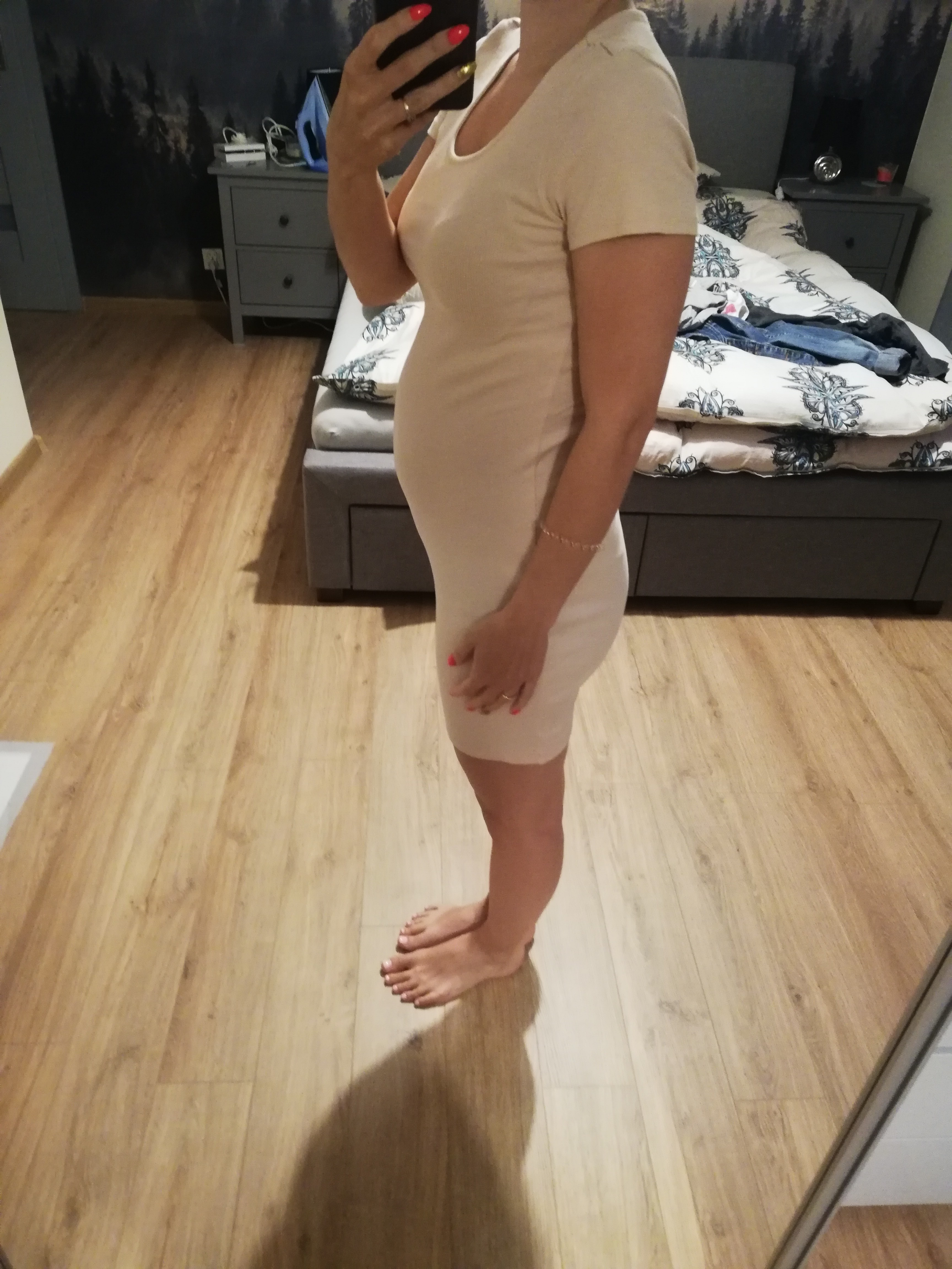 Sukienka baaaardzo obszerna, czuję się trochę jak w worku, ale jak wyżej - za jakiś czas pięknie zamaskuje brzuchol![]()