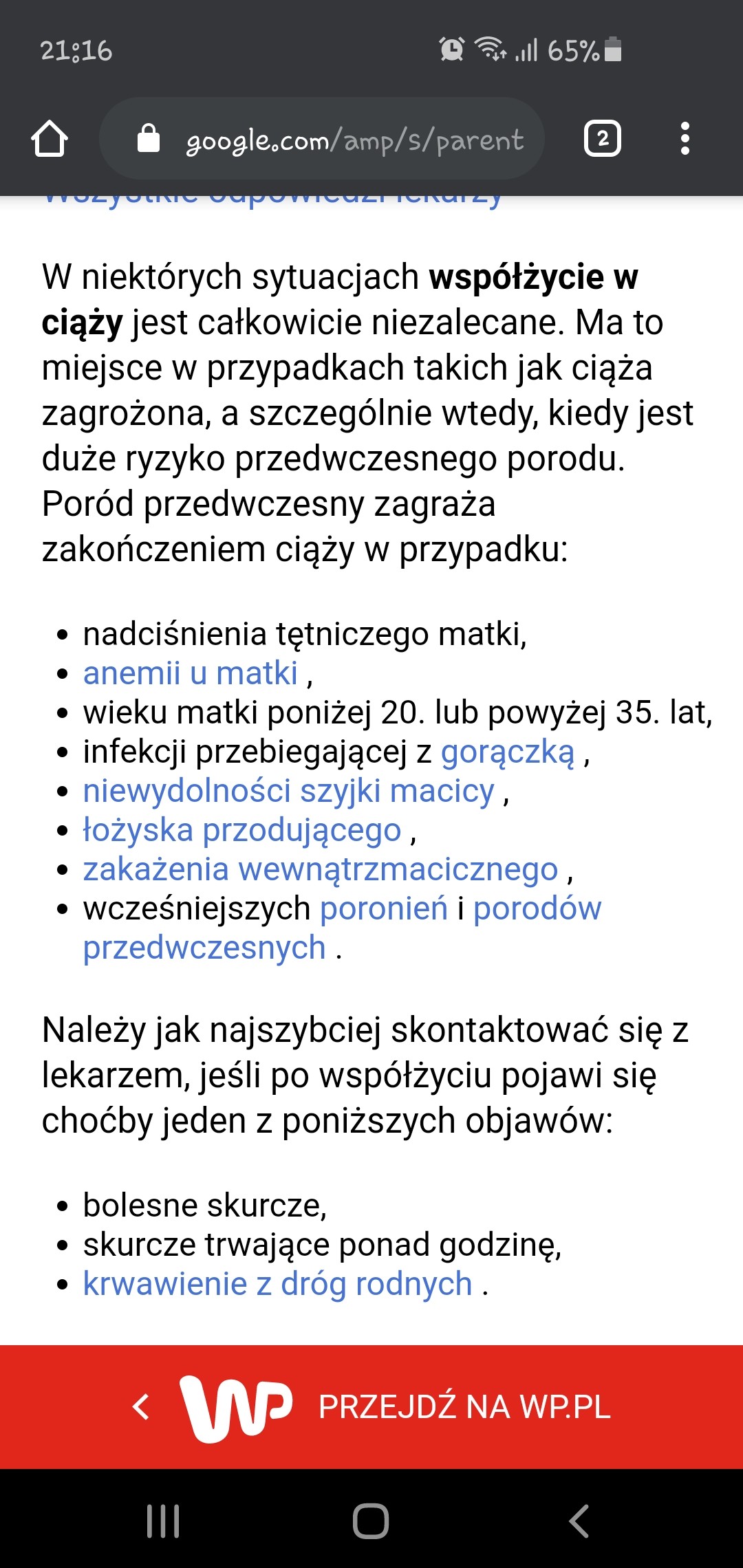 Takie informacje sa wszedzie. To tez przekazywal mi ginekolog wiec mysle ze jest w tym sporo prawdy. Niektore kobiety no mimo zdrowej ciazy po seksie maja bole brzucha itp. Kazdy sadzi co uwaza. Nie bede sobie pluc w twarz po seksie jalby cos sie zaczelo dziac ze to z moze mojej winy. Ja sie slucham lekarza i mysle ze kazdy powinien sluchac sie swojegoAle takie skurcze nie prowadzą do poronienia