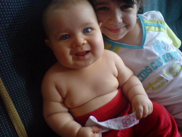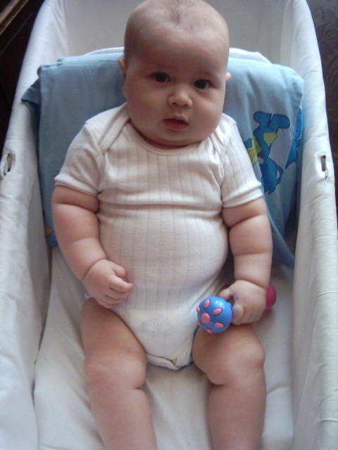 ,zawsze tak bylo jak widac na zdjeciach.Na tym w wozeczku ma niecale 5 m-cy,a na tym jak siedzi sobie goly ma niecale 8 m-cy.Kawał chlopa z niego.:-)