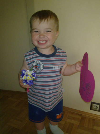 A "to" zastałam wczoraj po powrocie do domku .... Kwiatki, laurka ... I UŚMIECH od ucha do ucha!!!!!!!!!