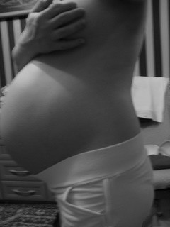 Za to Mała siedzi mi pod żebrami i co rusz próbuje wspiąć się wyżej. Nie mam już do niej siły powoli... Biust mi nie leży na brzuchu - biust mi stoi wyprostowany opierając się o brzuch :-( Ogólnie cała dzidzia mieści się chyba od pępka w górę, bo inaczej tego nie widzę