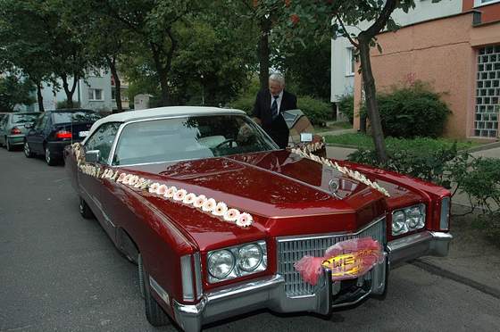 Samochód mieliśmy tak przystrojony, nie chcieliśmy więcej ze względu na masywną bryłę auta, żeby kwiaty nie "popsuły" efektu :