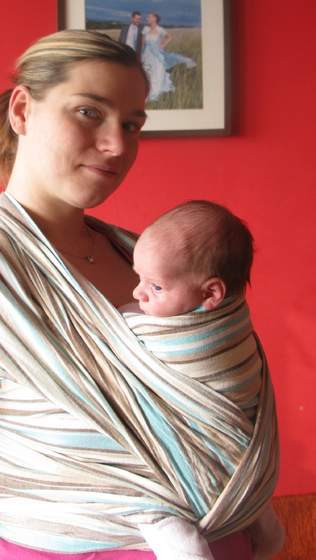 U nas był mały problem bo mała miała strasznie płaczliwy wieczór i przytulaśny.. wiec jak już siedziała w chuście to nie wiedziałam czy płacze... bo jej w niej źle, czy płacze bo ciąg dalszy rozrywki wieczornej Karolci.