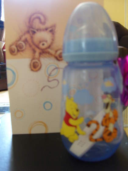 Stanęło na tym, że rano czmychnęłam do miasta i umówiłam się z G. w parku niedaleko centrum. W gorący, słoneczny, przepiękny dzień, pod ogromną kwitnącą wiśnią dostał ode mnie paczuszkę, a w niej kartkę z "listem od Dzidziusia" i butelką dziecięcą z kokardką, a w niej był test z dwoma II kreseczkami :-) Aż się popłakaliśmy oboje...