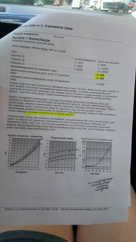 No wydaje mi sie ze te trzy pierwsze okej ale mowil.mi lekarz ze mam cisnienie ppdwyzszone... ale zastanawiam sie jak oni moga to stwierdzic jak.raz.mo zmierzyli cisnienie i wiadomo ze kazda z nas sie troche denerwuje takze... dziwneJa nie miałam w ogole tych parametrów, mam tylko trisomie i ryzyko porodu przedwczesnwgo i to masz moim zdaniem bardzo ładny wynik, a reszty nie pomoge.
