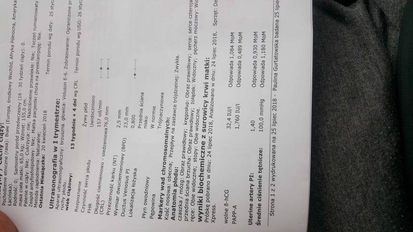 Aha aha 1 sierpnia mam wizyte u swojego gin to zobacze co mi powie. Dziekuje uspokoilas mnie troszeczke [emoji8]Tak, wszystko jasne masz niską pappe 0,489 i stąd taki wynik. To nic złego ale daje informacje zeby uważać pozniej.
