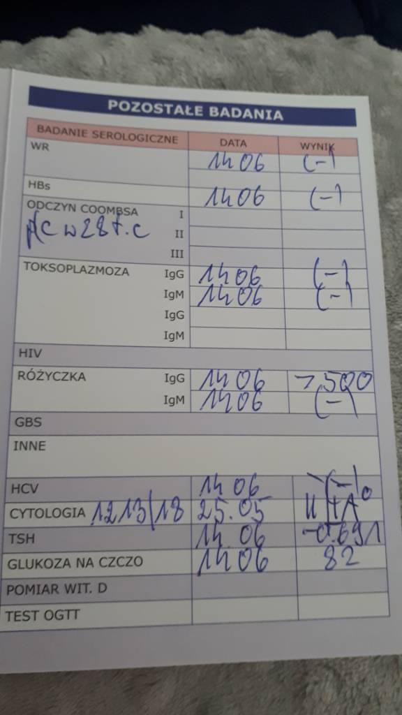 To mam w karcie ciąży, większość już zrobiłam na początku.Dziewczyny ale jakie jeszcze badania krwi wołają do porodu? Grupę krwi to wiem. Coś jeszcze? Ja od gin też nie dostaję żadnych wyników. A jak nie będę miała to co? Każą mi wrócić jak zrobię? [emoji23]