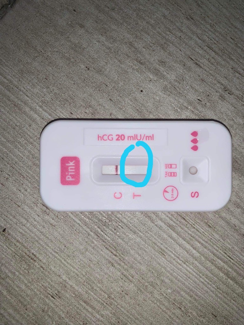 Dziś 28 dzień cyklu a test wygląda tak. Znajduje się pośrodku tego niebieskiego kółka.