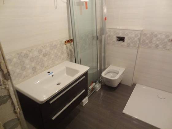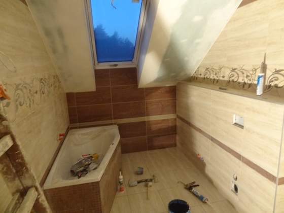 górna łazienka, na zdjęciach nie ma jeszcze zamontowanych WC i bidetu i sufit w powijakach