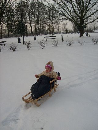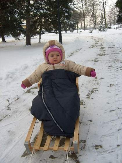 Nie wiem jak Ona to zrobiła, ale na końcu zasnęła w sankach :-)