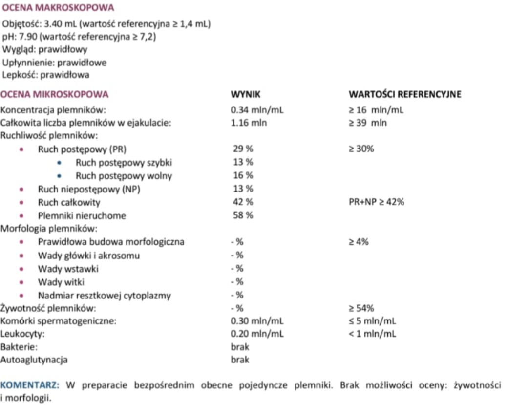 Ok dziękuję że się podzieliłaś. W zasadzie skoro nie oznaczyli morfologii to nawet nie wiem czy jest sens robić HBA i DFI, mój lekarz prowadzący mówił nam żeby nie robić bo to strata pieniędzy „leczenie będzie takie samo niezależnie od wyników a badania są drogie, dołożycie sobie stresu i nieprzyjemnego badania - nie ma sensu” (ale ja się uparłam). Więc może nie róbcie tylko faktycznie idźcie w IVF. Myślę że to dobra decyzja. Zawsze warto się też przejść do androloga. Chociaż myśmy byli u wszystkich świętych i wniosek był jeden, IVF z dwuetapową selekcją nasienia więc… czy to coś dało poza wydaniem pieniędzy - niebardzo…Robiliśmy podstawowe badanie nasienia, bo miała być to tylko formalność...Zobacz załącznik 1735944