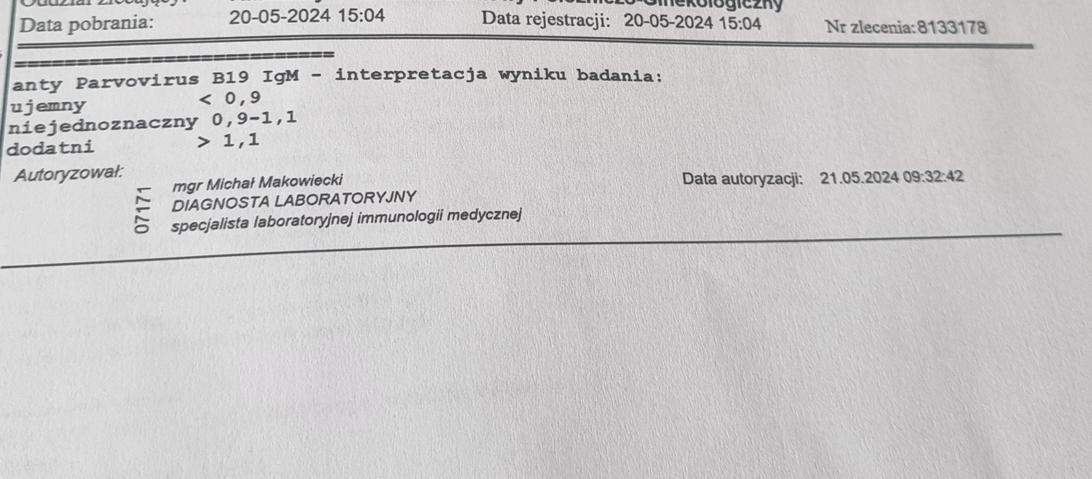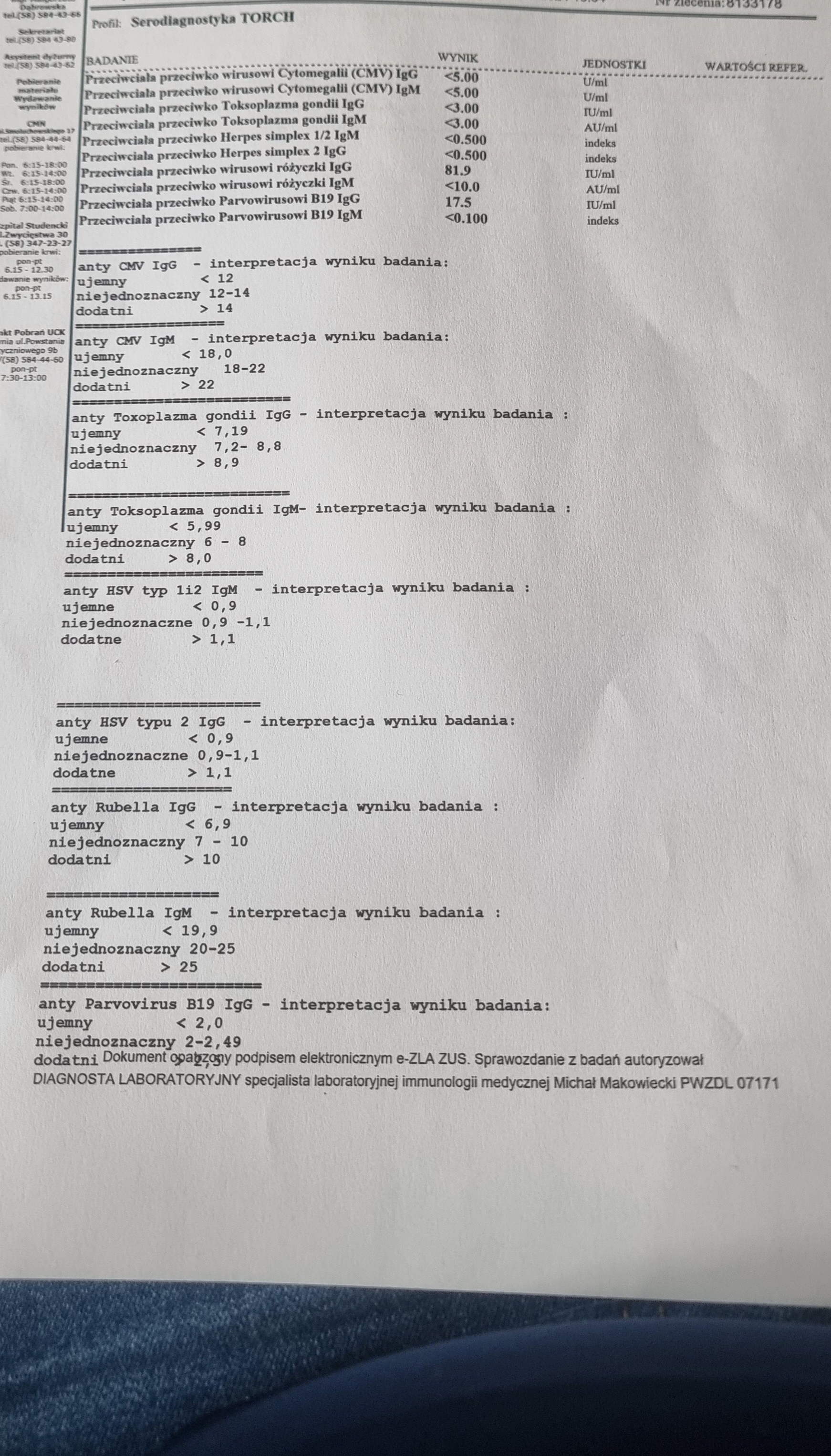 Proszę o pomoc w interpretacji wyników badań. W szczególności martwi mnie wynik parwowirosy b19 igg i wyniki na różyczkę. Dodam, że w tej chwili jestem zdrowa, nie mam żadnych objawów, gorączki czy złego samopoczucia.