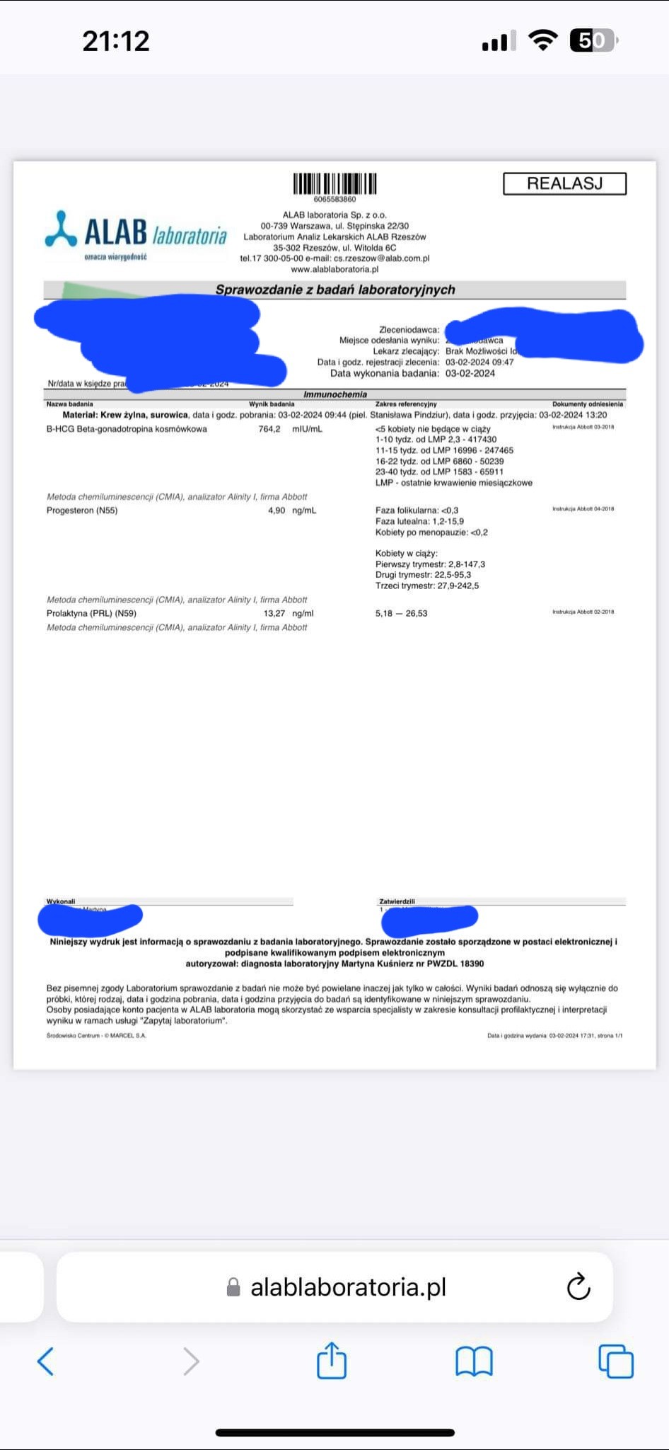 Ale patrząc na ten wynik, który dołączyłam potwierdza on ciążę już tak ?