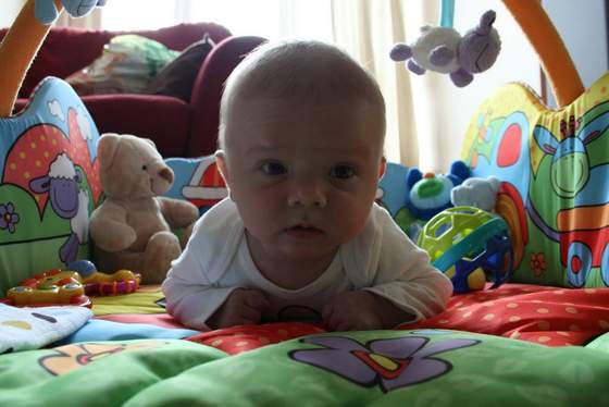 Co do podnoszenia glowki - to powiedziala, ze Adas jest raz-jeszcze za maly, dwa - glowka jest za ciezka na takie cwiczenie. Tym bardziej, ze lezac na brzuszku glowke dzwiga bardzo wysoko: