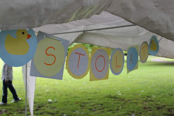 Dekoracje: internet (ebay, urodzinki.pl), flagi małe-duże, baner "sto lat", baner trójkąty, słoiczki z cukierkami, pojemniczki na popcorn - robialam sama
