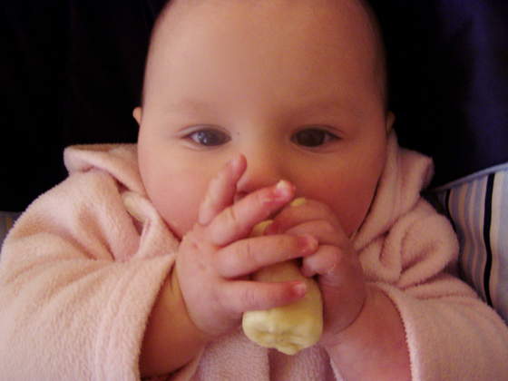 )) Ja też jestem za tym żeby dzieciom dawać jedzonko do rączki, myśle że to fajnie rozwija i uczy