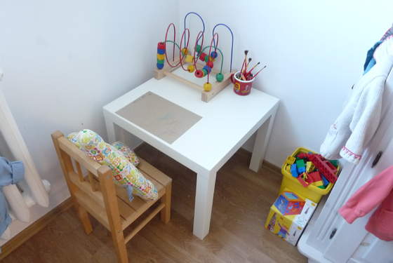 Mam dla Krysi zintegrowany stoliczek z krzesełkiem, b. fajny ale zupełnie nie wiem gdzie go postawić