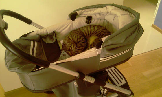 Ale kota to lepiej odzwyczajać, bo się później może buntować, jak Szymuś zajmie mu miejsce w gondolce