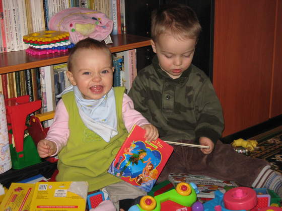 Bardzo jest w niego wpatrzona, a on w nią. Gdy kiedyś Robert był u dziadków, szukała go za zasłonką, gdzie często podczas zabawy jej się chował. Po powrocie wycałował ją po rączkach i po główce – tak wita się z nią każdego poranka. Gdy Robert bierze dla siebie jakąś zabawkę z półki, najpierw inną podaje Ani. Kiedy Ania śpi (nie mogę ułożyć ich tak, żeby spali w jednym czasie), Robert jest cichutko i nie pozwala włączyć radia.
