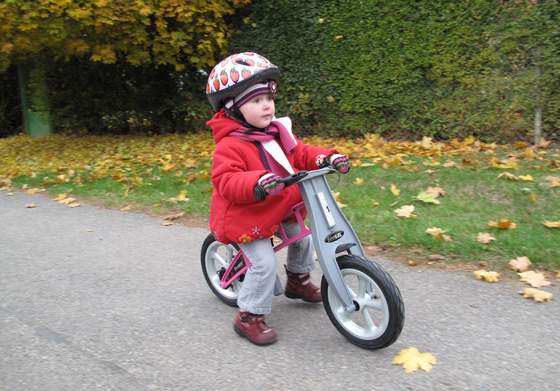 Nauka jazdy na rowerku bez pedałów to najbezpieczniejsza metoda opanowania utrzymania równowagi. Podczas upadku na klasycznym rowerze z pedałami i bocznymi kółkami maluch pada na ziemię razem z całym rowerem jak ta gruszka. Na biegówce nogi są wolne. W każdej chwili mogą podeprzeć zbyt duży przechył i uchronić przed wywrotką.