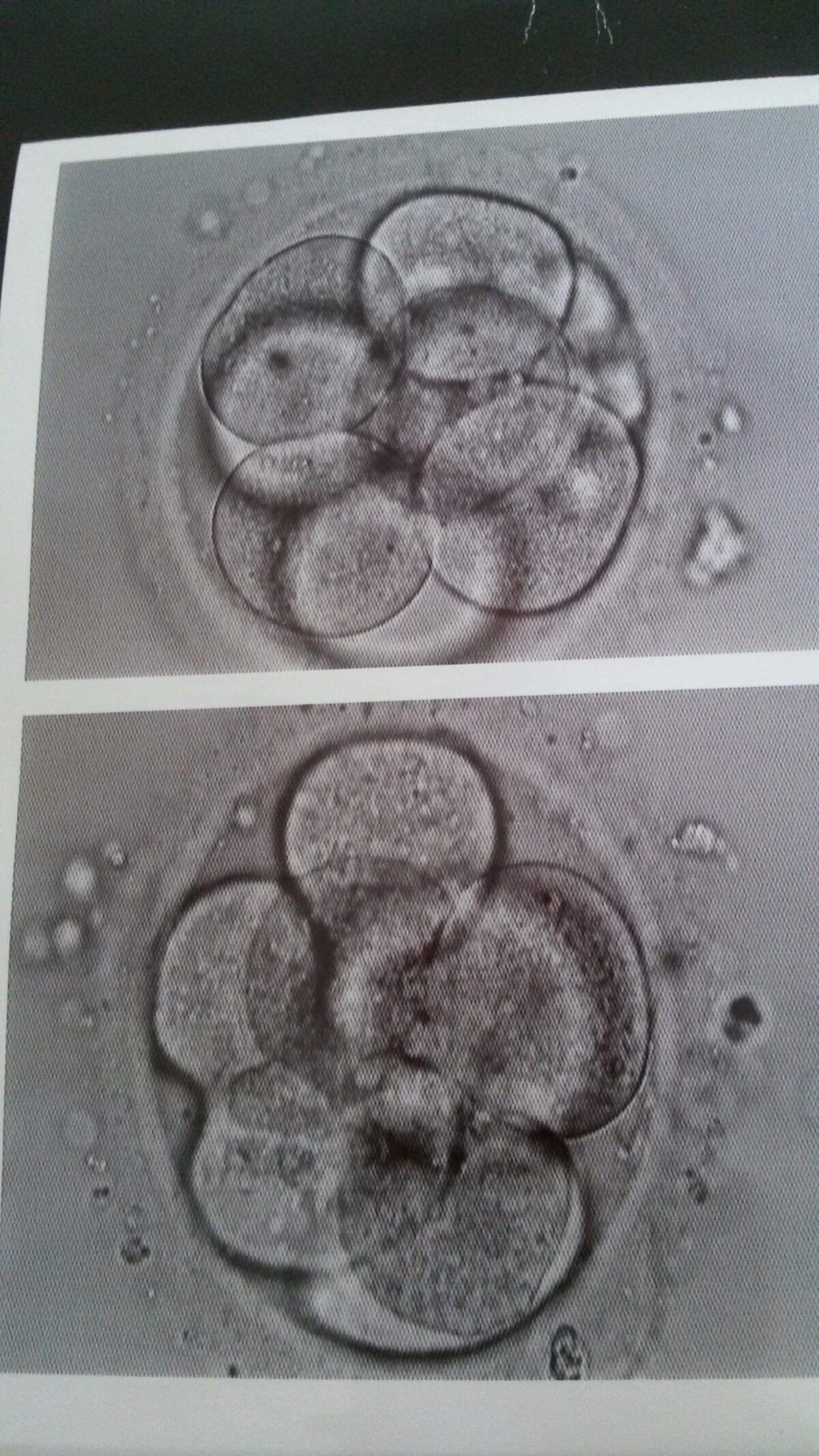 Podane mialam 2 zarodki bo tak chcieliśmy. Nie znam klasy ale pani embriolog powiedziała ze śliczne 8 komórkowe.Pozostale 4 mrozimy pojedynczo. 2 komorki tez zamrozilismy. Czuje sie ok, ale jajniki troche bola.Sa powiększone, jeden ma 9 cm, drugi 5 cm. Mam lezec i pachniec. A o to nasze malenstwa![]()