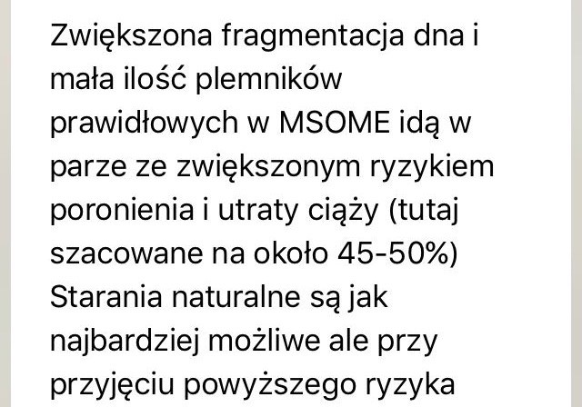 Marshia macie za dobre wyniki na dawcę nasienia. Ja przy takich bym się naturalnie starała. Myślę że wiekszym problemem może być jakość Twoich komórek. A in vitro może być dobrym rozwiązaniem, bo przez pgd pewnie możecie sprawdzić zarodek pod kątem dziedziczenia sm.