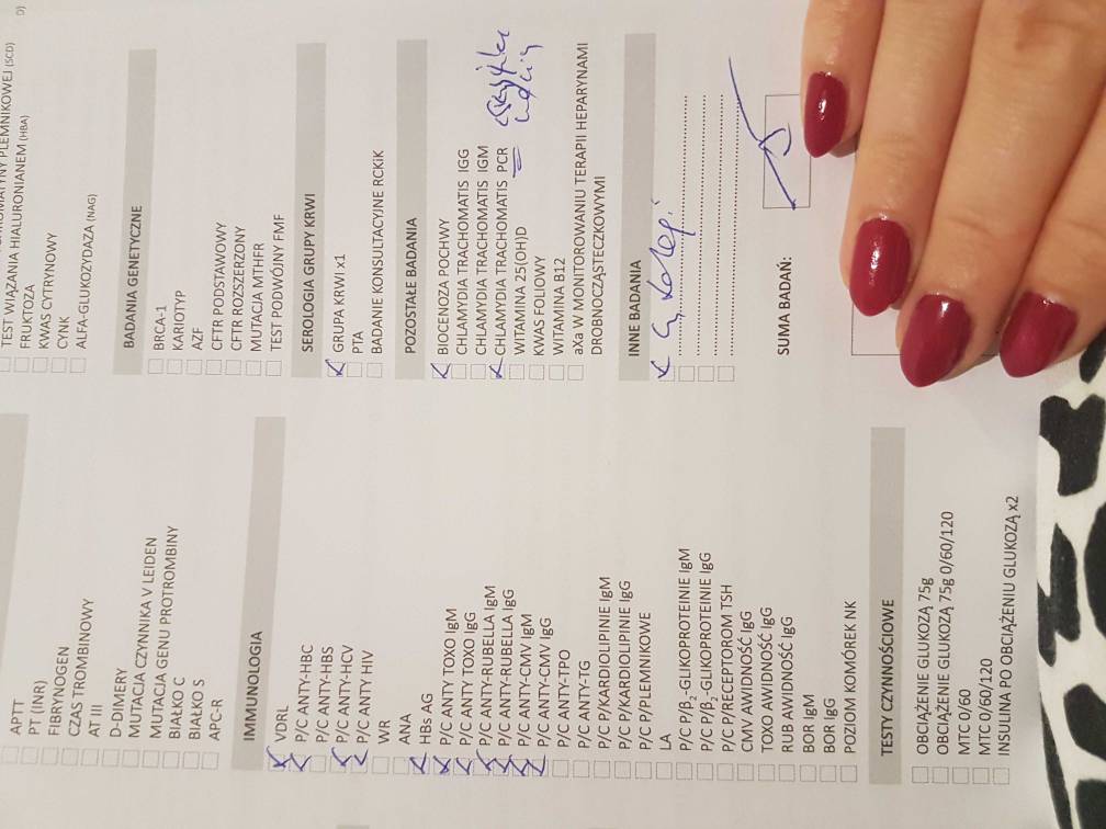 Robić pakiet na CFTR ale nie podstawowy a rozszerzony. My robiliśmy oboje, bo jeśli jesteście nosicielami genu obydwoje to dziecko ma wysokie szanse na chorobę mukowiscydozy.Hej dziewczyny. My dzis po pierwszej wizycie w klinice. Lekarz zrobil wywiad. Poinformowal, ze sa trzy metody. Stymulacja na naturalnym cyklu, inseminacja i in vitro. Biorac pod uwage to,ze nie pekaja mi pecherzyki ( nie wszystkie, dzis na usg znow torbiel czynnosciowa), to, ze po laparoskopii zauwazyli ogniska endometriozy i to, ze mialam ciaze pozamaciczna najlepszym rozwiazaniem jest in vitro. Powiedzial,ze przy in vitro istnieje najmniejsze ryzyko powtorki pozamacicznej ( choc istnieje). Dal nam liste badan, ktore musimy zrobic i teraz zjawic sie miedzy 12-14dc w klinice z wynikami. Jak beda ok to podpisujemy dokumenty i zaczynamy stymulacje. Dostalismy caly pakiet dokumentow do przeczytania i cennik. Dr powiedzial,ze leki, ktore mi zlecono na insulinoopornosc oraz homocysteine i trombofilie mam brac. Nic nowego nie dolozyl. Badania, ktore kazal zrobic obowiazkowo zalcze w zdjeciu. Mezowi tak samo. Ale to co nas zastanawia to badania nieobowiazkowe. Dla mnie kariotyp a dla meza kariotyp i CFTR podstawowy. Powiedzial, ze informuja o nich ale oni do niczego ich nie potrzebuja bo na to lekarstwa nie ma. Decyzja nalezy do nas.. co mozecie mi podpowiedziec? Warto czy nie? Drogie one sa? Powiedzial,ze to badanie dotychy podzialu chromosomow i moze wskazywac na wadliwe zarodki ale tego sie nie leczy i tylko 1 ciaza na 4 moze byc niepowodzeniem w ciazach 1 na 100. Cokolwiek to znaczy.. Zobacz załącznik 984149Zobacz załącznik 984150