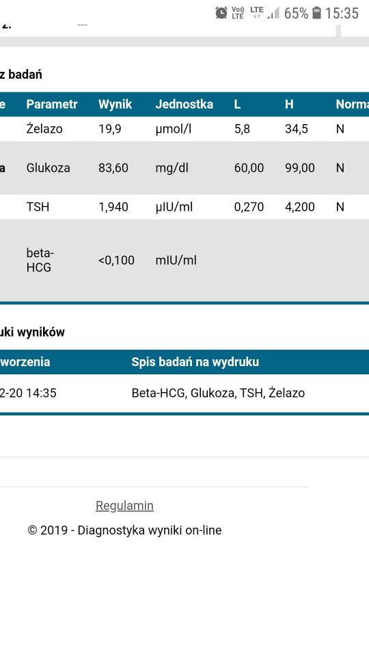 Zrobilam tez homocysteine, chce sprawdzić czy dalej mi spada (we wrześniu byla 9.6) Ale wynik będzie najprędzej za 2 dni, zelazo (bo dawno nie badalam a ciagle mi zimno) i cukier...no i zrobilam bete, żeby mieć pewność, ze to nie ciaza A jednak może ta menda torbiel ;( Zobacz załącznik 1059085