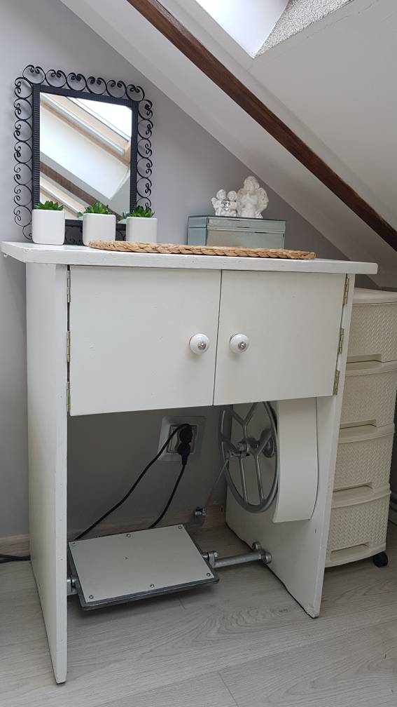 A maszynę mojej Babci zabrałam do siebie i pomalowana służy mi jako "toaletka"