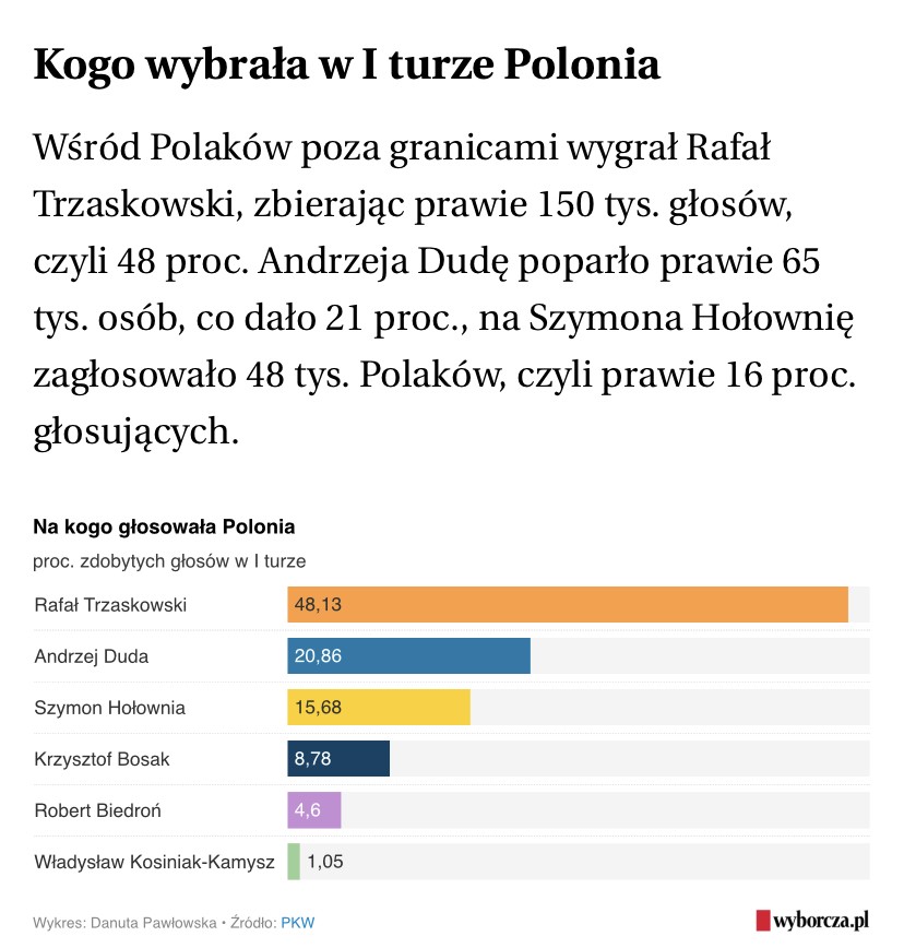 Tylko ta z USA ma klapki na oczach. Ludzie, którzy w większości latami Polski na oczy nie widzieli. Ogólnie jestem za tym, żeby emigracja głosować nie mogła.Polonia wręcz szkodzi Trzaskowskiemu. W USA przegrał i to procentowo większą różnicą niż w PL.