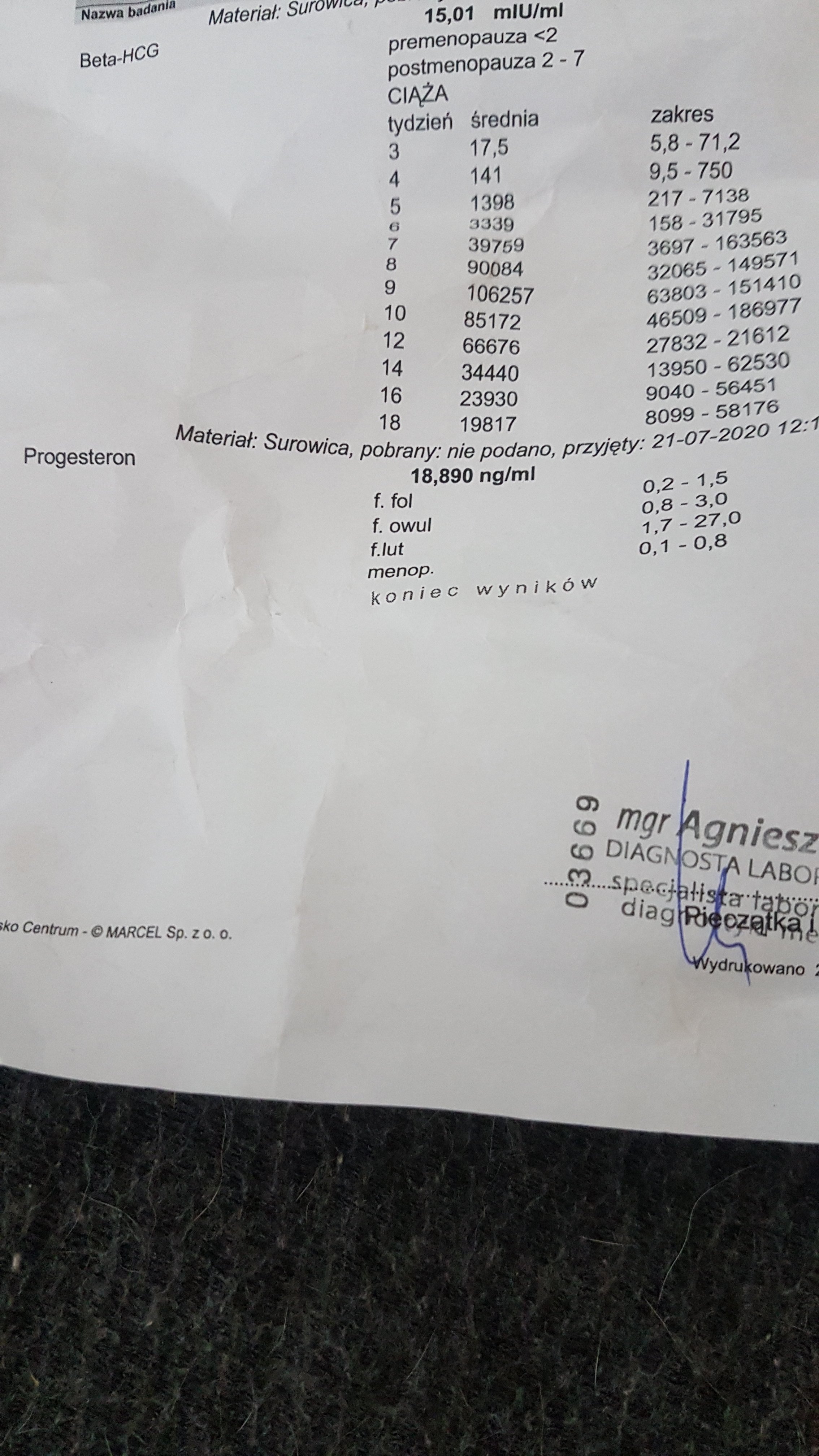 co twierdzili ze nic nie iwdac i ze test nie moze wyjsc tak wczesnie to wrzucam zdjecie jak sie zachowuja testy zwykle sikane najtansze z najtanszych - one wychodza ale niestety nic nie oznaczaja ;( moja beta dzisiaj w 5 dpt 15 a prog tylko 19 przy dawce 1000 mg... Jutro oczywiscie powtorze ale mysle ze bedzie spadac a juz napewno raczej nie urosnie do 30 bo tyle chyba powinna byc w 6 dpt? co najmniej... Chcialabym napisac ze dolaczam do fredzi ale ja narazie nie mam sily na kolejna stymulacje ;(