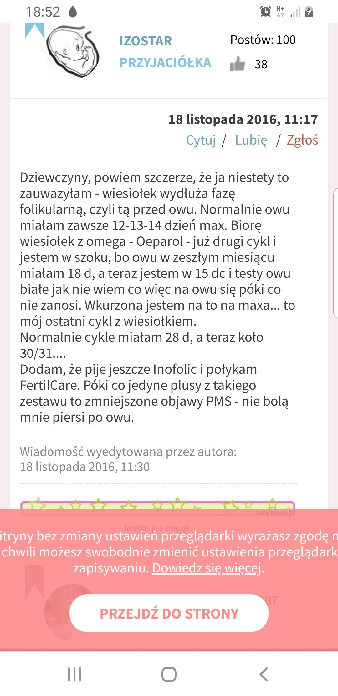 Kochana nie łykaj tego wiesiołka bo wszystkie zioła wpływają na cykl menstruacyjny !!! Ja kiedyś tez łykałam to cuda się działy i oczywiście się nie udało.