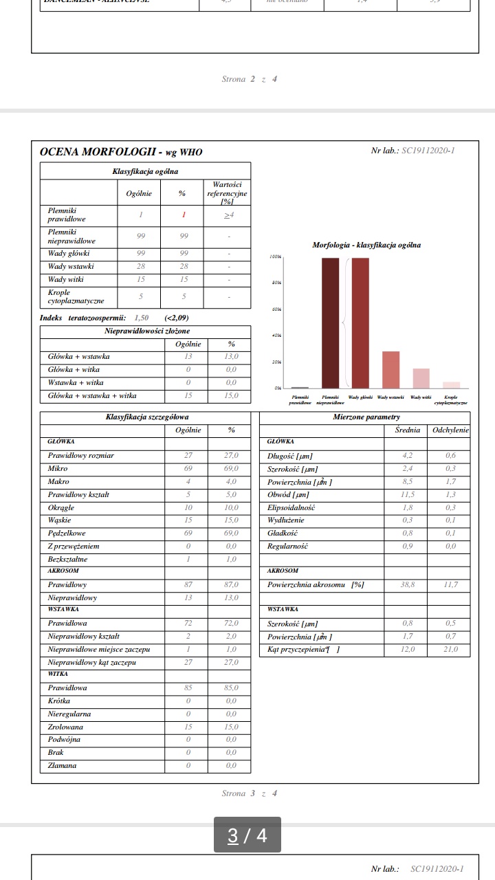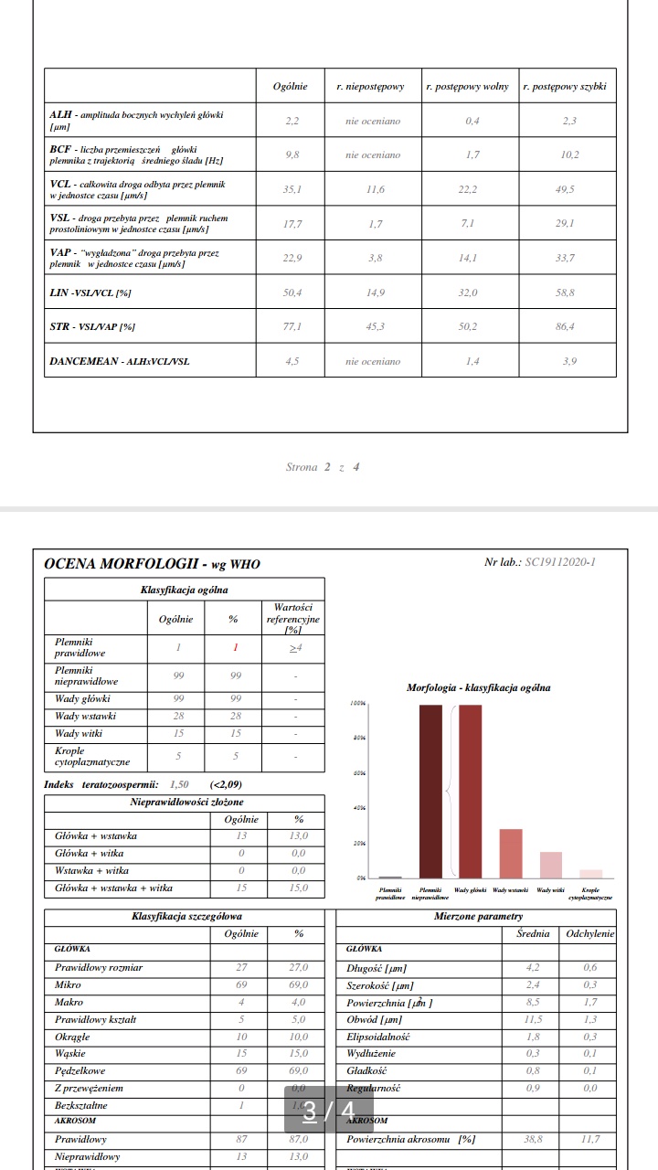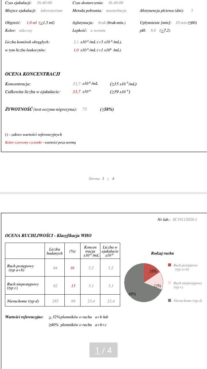 Ilość w normie, mała próbka, stresował się? To jego pierwsze badanie nasienia?Popatrzcie na te wyniki - ona byla u Guzowskiego w Gameta i kazal im zrobic to badanie - jest tak zalamana ze juz nawet nie chce do niego z tym jechac. Moze jakos to poprawic?