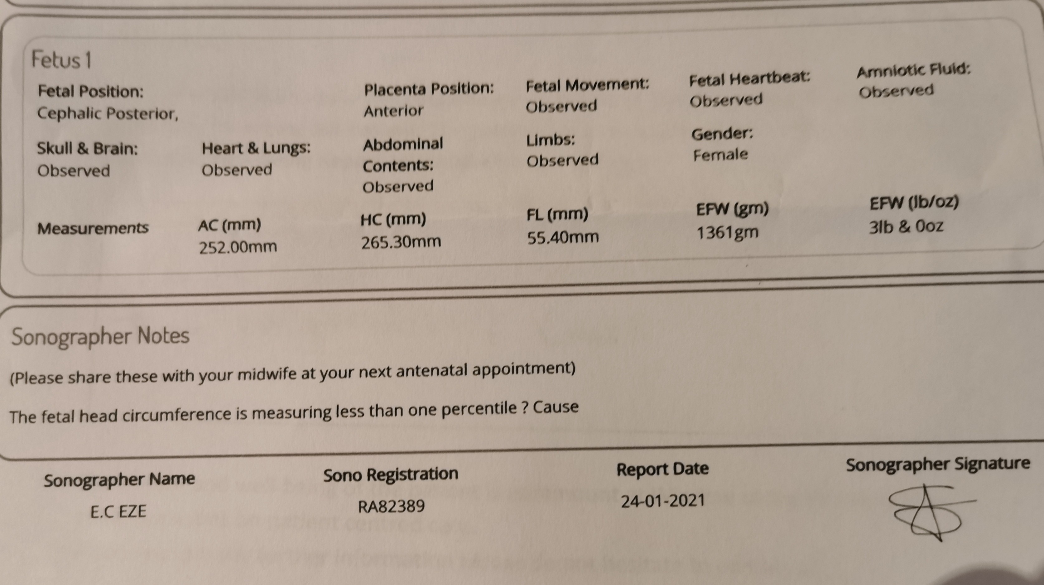 A kto Tobie wykonywal usg? Wydaje mi się że nie lekarz jak to w UK najczęściej bywa. Myślę że nie potrzebnie Cie nastraszyli i wszystko jest okTo jest reszta wymiarów... Wszystko inne jest w normie tylko glowka mala....Zobacz załącznik 1230503
