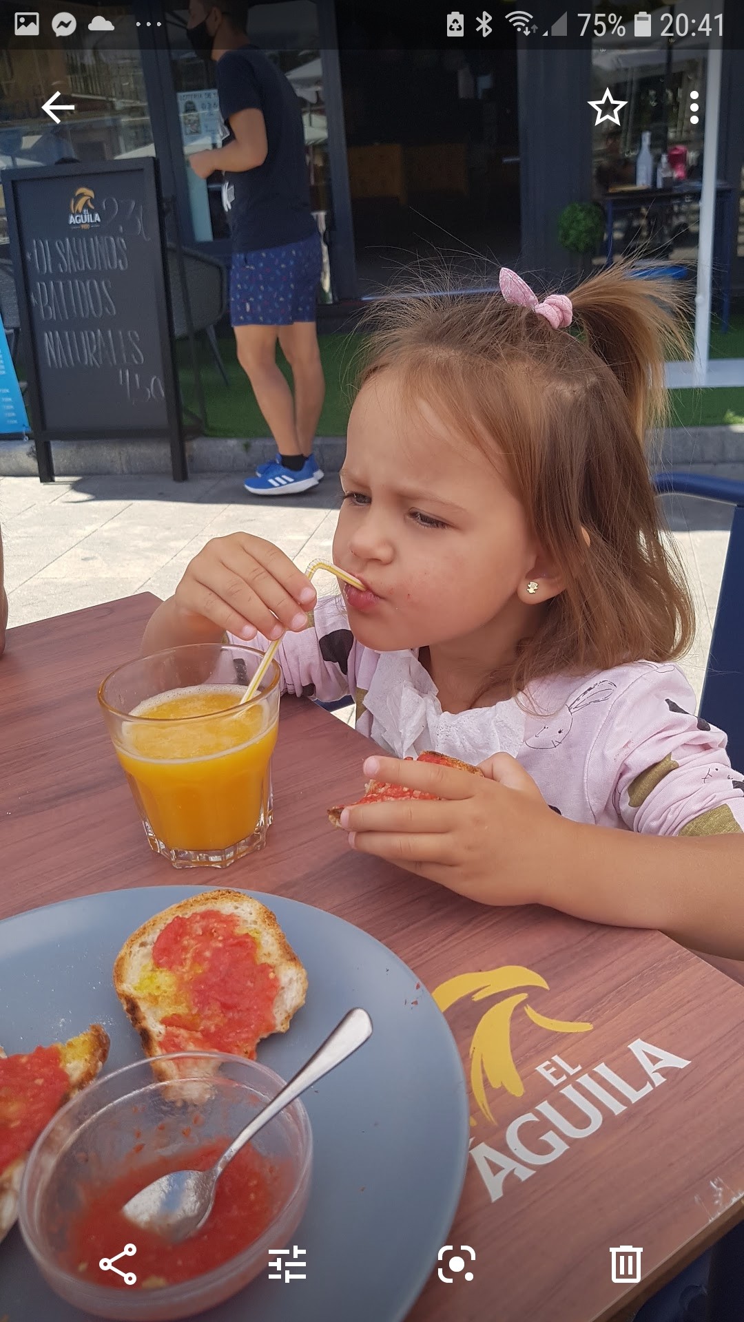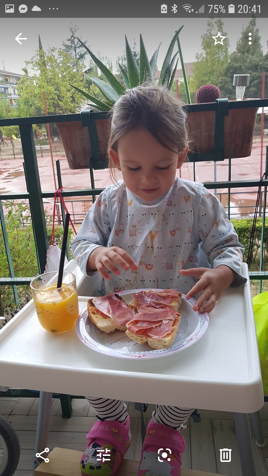A na śniadanie bułeczki, tarty pomidor oliwa z oliwek I szynka parmeńska do tego kawusia na mleku i sok pomarańczowy [emoji39]