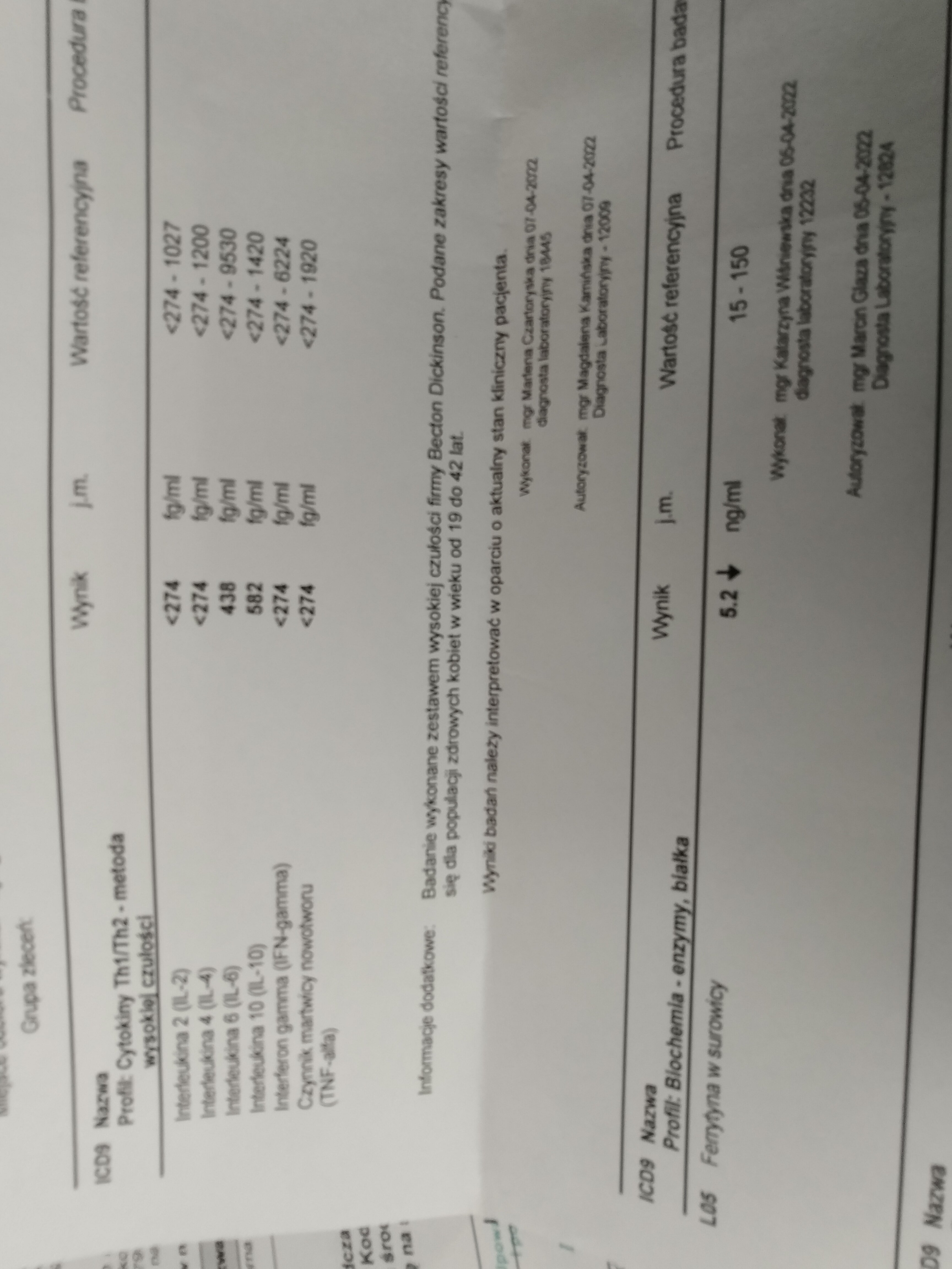 Odnosnie cytokin to nie wiem ale wyglada, ze masz za malo zelaza.Kochane znacie się na tym? Ja chyba nie umiem czytać ze zrozumieniem