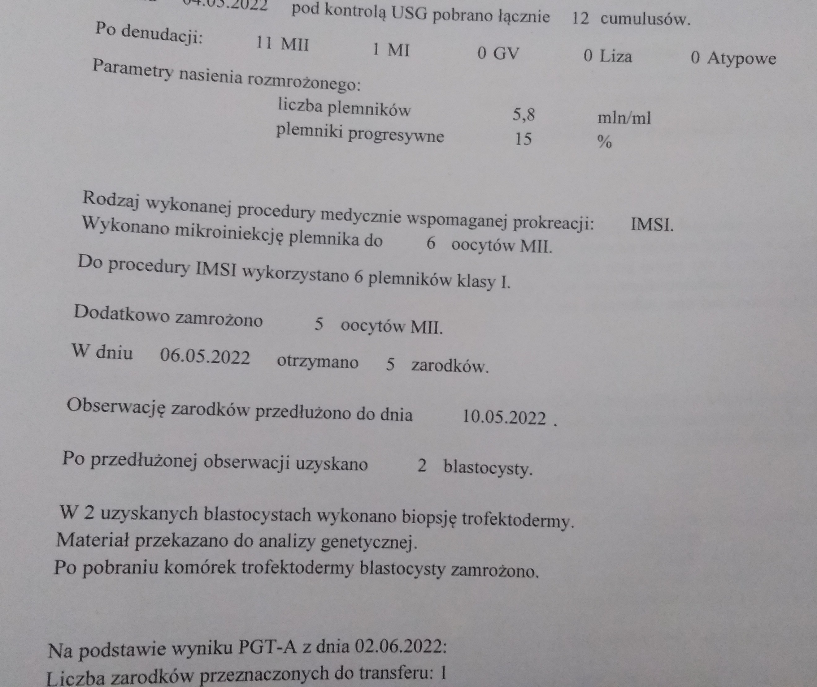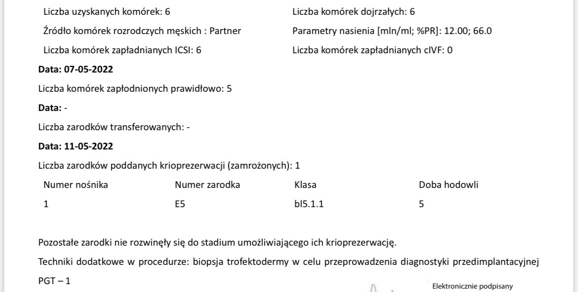 Ja raport dostałam ponad miesiąc po punkcji z wynikiem PGT i klasy zarodka nie maJa po pierwszej punkcji dostałam od razu taki raport..