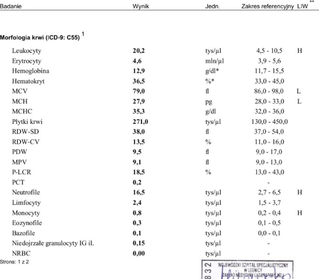 Miałam tak samo ...naprawdę ... Jak zobaczyłam leukocyty zedwo 18 tys to byłam pewna że już po wszystkim . To są moje wyniki z pierwszych tygodni .. i co dziś mój synek co chwilę przypomina mi o sobie kopniakami , zgaga meczy od ponad miesiąca i brzuch rośnie ... Głowa do góryno.nie wiem kiepsko to widzę nie wierzę żeby się tym.razem udało.