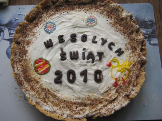 A Ja zrobiłam Mazurka z podwójną masą jedna pod spodem karmelowa (z mleka kondensowanego),a na górze jogurtowa żeby zabić troszkę słodkość karmelu i przyozdobiłam świątecznie