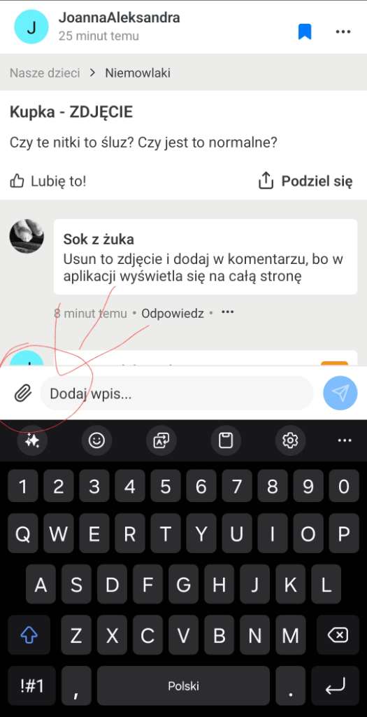 U mnie to zupełnie inaczej wygląda. Korzystam z przeglądarki.Tutaj trzeba kliknąć i tam wybrać zdjęcie i mona dodać, tylko trzeba coś napisać, bo samego zdjęcia nie doda