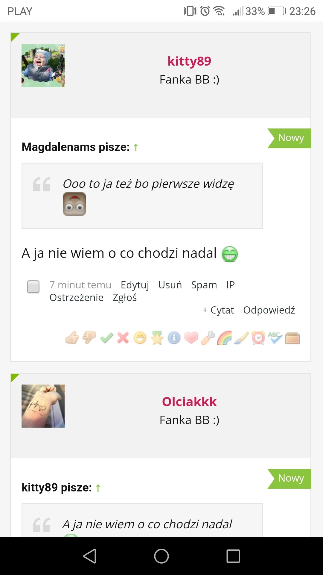 hej dziewczyny. Jak się was na bieżąco nie czyta to zaraz te posty rosną, tak dużo piszecie ale to dobrze z jednej strony, bo pytania jeszcze nie zadam a odpowiedz już jest Polowkowe badanie mam 17.12 chyba najpozniej. Ruchy tez czuje, ale nie aż takie mocne . Jak narazie to spokojnie, w dzień raz na jakiś czas. Późnym wieczorem lubi się trochę poprzemieszczac ale aż tak tego nie widać jak u was Co do pępka to jest na miejscu, narazie nie widze żeby miał wylazic Lini też nie widać. Pozdrawiam