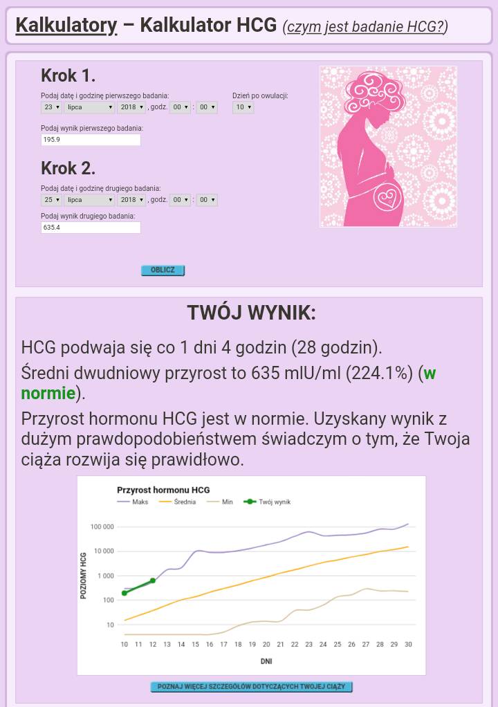 Sprawdziłam twoją betę w pierwszym lepszym kalkulatorze to wyszło, że to są wyniki poniżej normy, bo przyrost niecałe 60%. Więc może wcale nie jest taki duży przyrost.Dziewczyny , czy Wy też śledzicie swoją betę ? Dziś już nie mogłam sobie odmówić ostatni raz tej przyjemności [emoji23] Ale jestem zszokowana , co sądzicie o tak dużych przyrostach ? 21.07 - 61.7 , 23.07 - 195.9, 25.07 - 635.4
