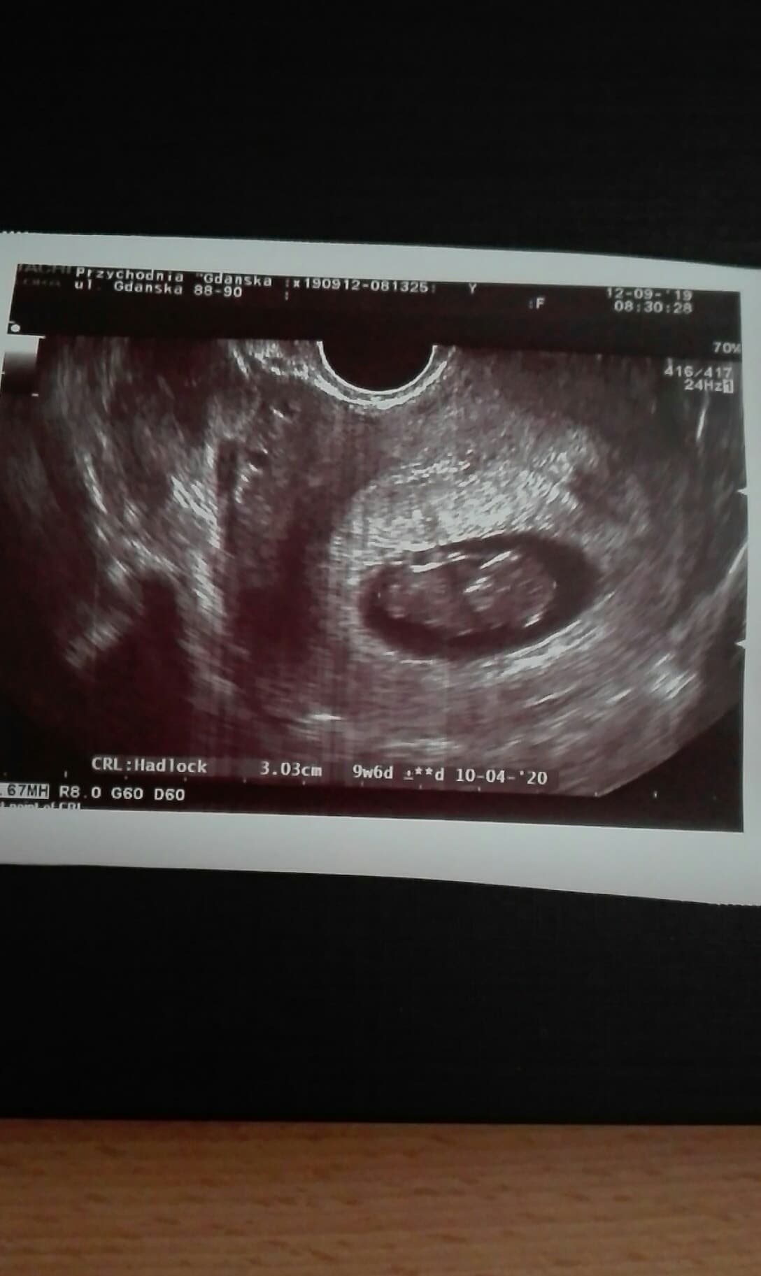 Wyszedł 9. tydzień i 6. dzień. Miałam stracha przed tą wizytą, ponieważ przedwczoraj w nocy zaliczyłam przed łóżkiem lekki upadek z powodu omdlenia. Wówczas było niskie ciśnienie atmosferyczne i to mnie dodatkowo dobiło... Na szczęście uchroniłam brzuch. Mąż to prawie wtedy zszedł na zawał.